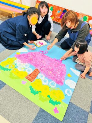 壁面工作は春らしい鮮やかな仕上がりへ♪